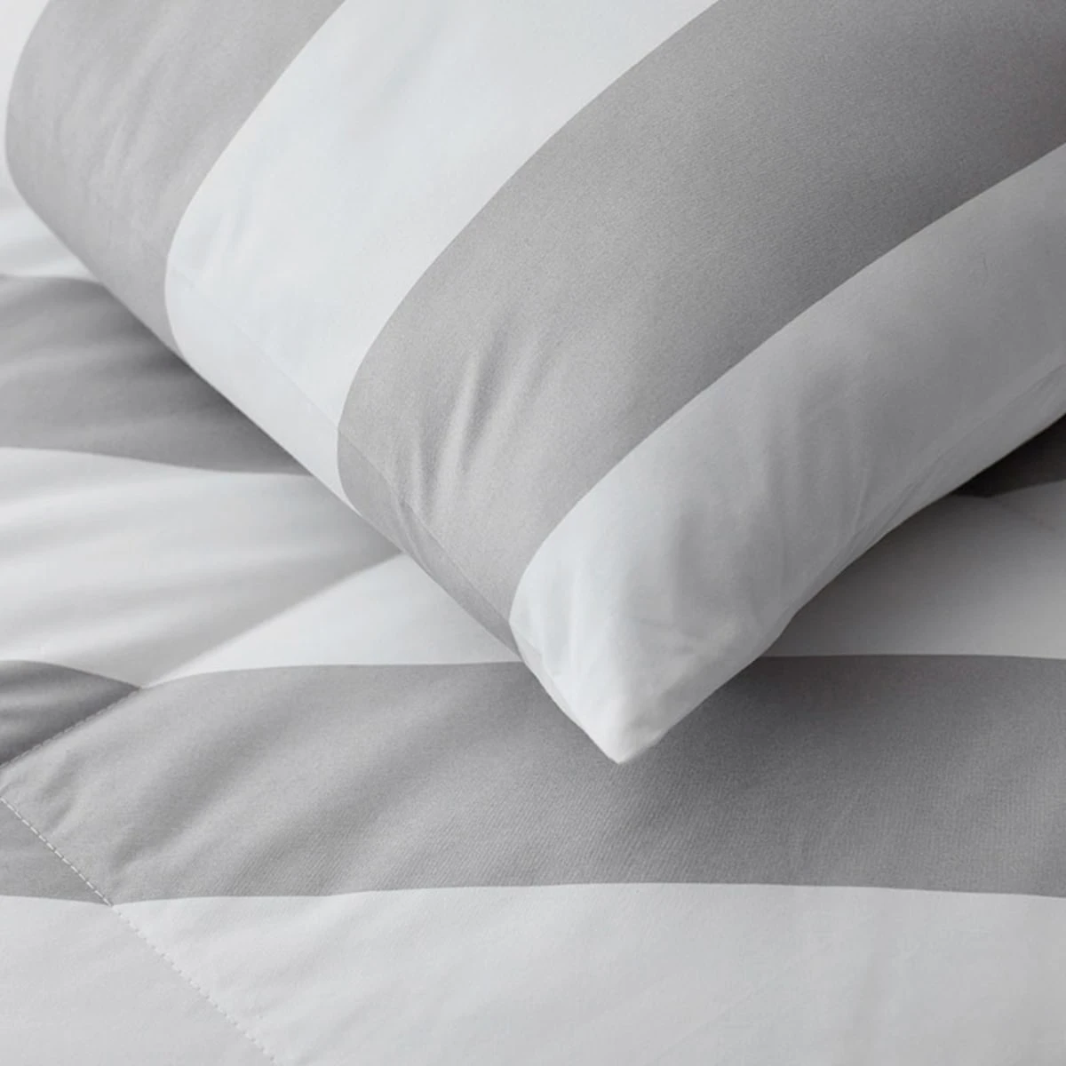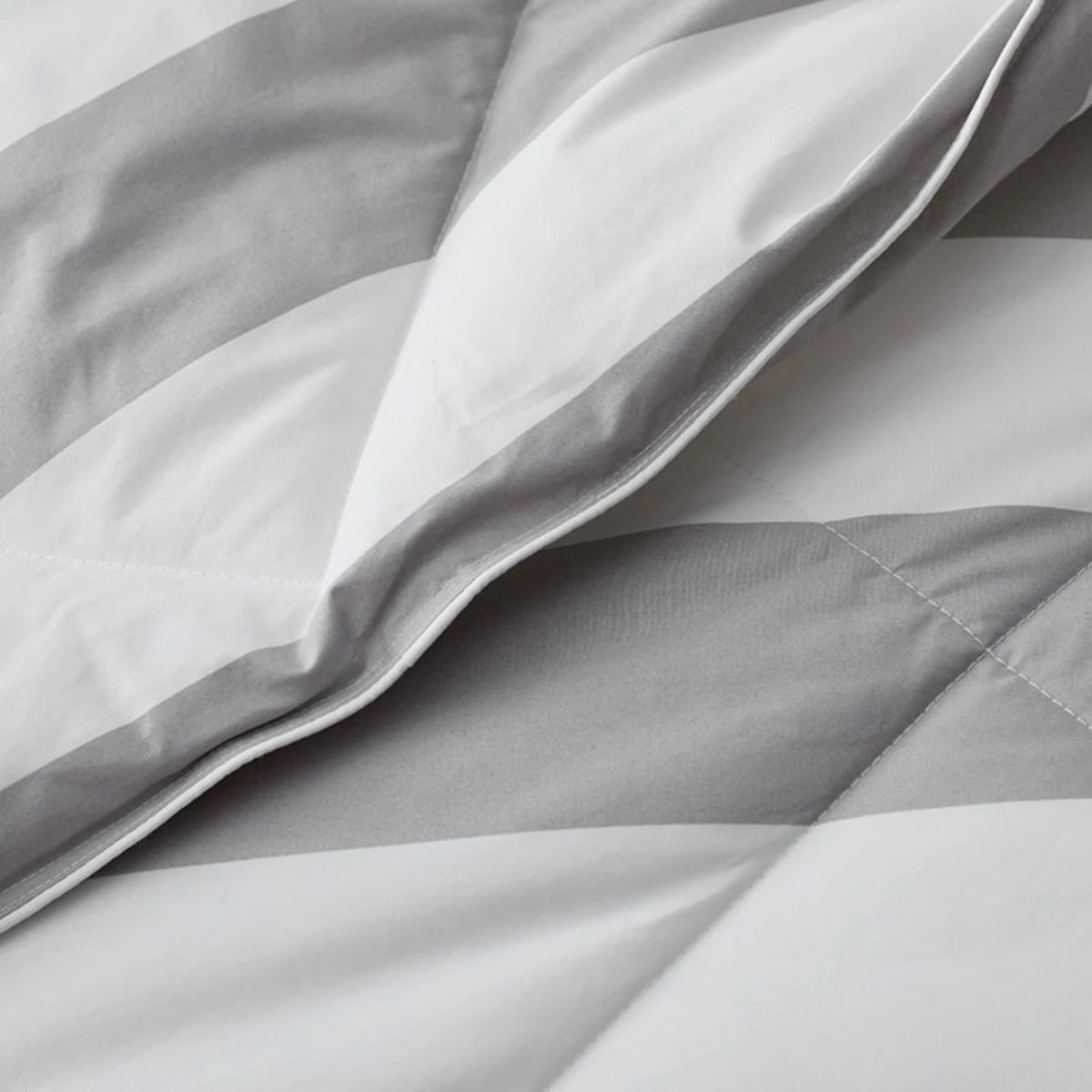 Bold awning stripes give a cool update to our dreamy comforter. A great alternative to down, this medium-weight comforter is an ideal layer for year-round use. Tailored with a soft cotton shell, distinctive diamond quilt stitching keeps the lofty, hypoallergenic synthetic fill evenly distributed to keep you cozy all night long.