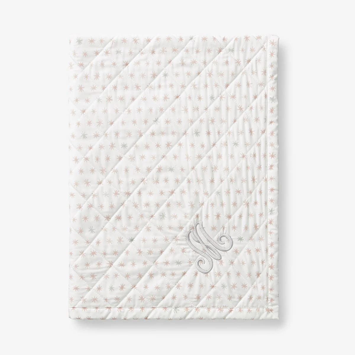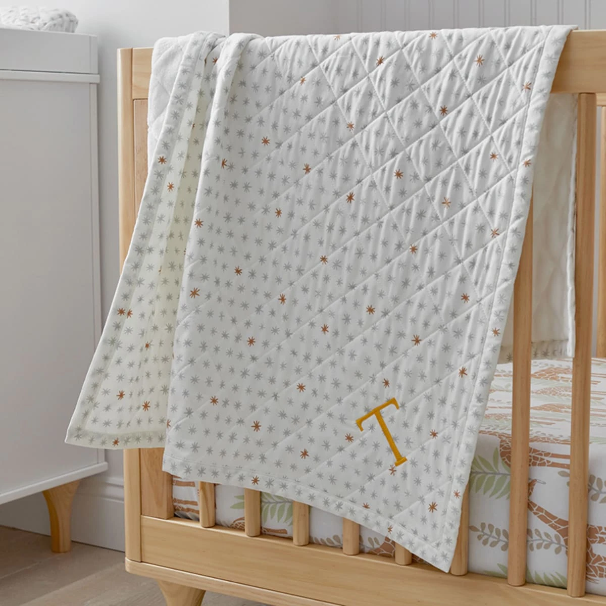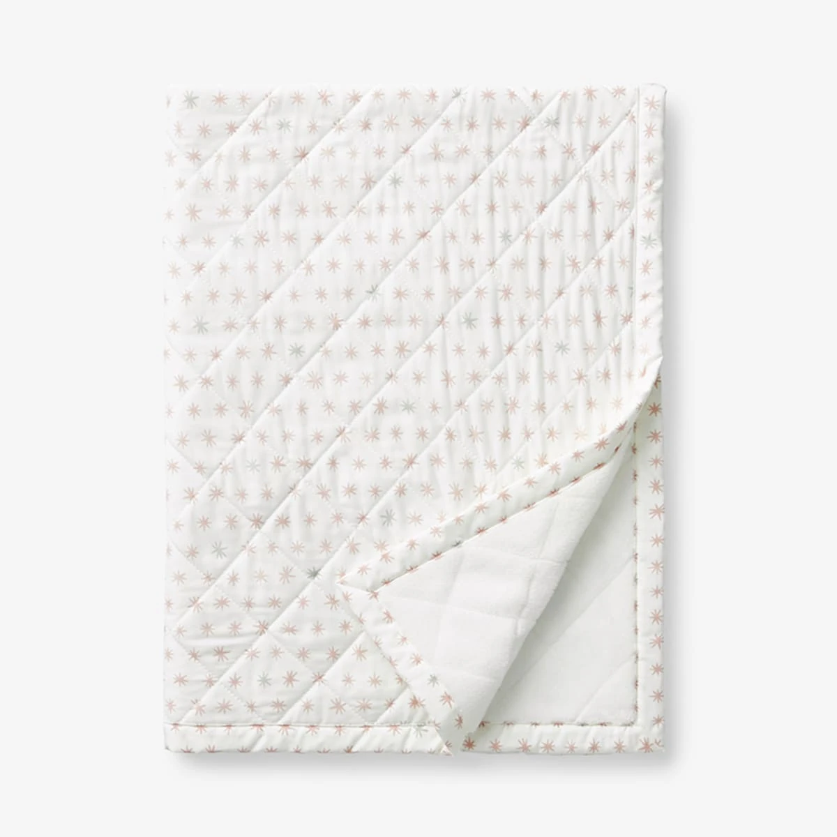 With petite hand-drawn stars on one side and an ultra-cozy Sherpa fleece on the reverse, our organic cotton stroller blanket offers cozy comfort beyond the crib. It’s lightly quilted with recycled polyester fill for extra warmth.