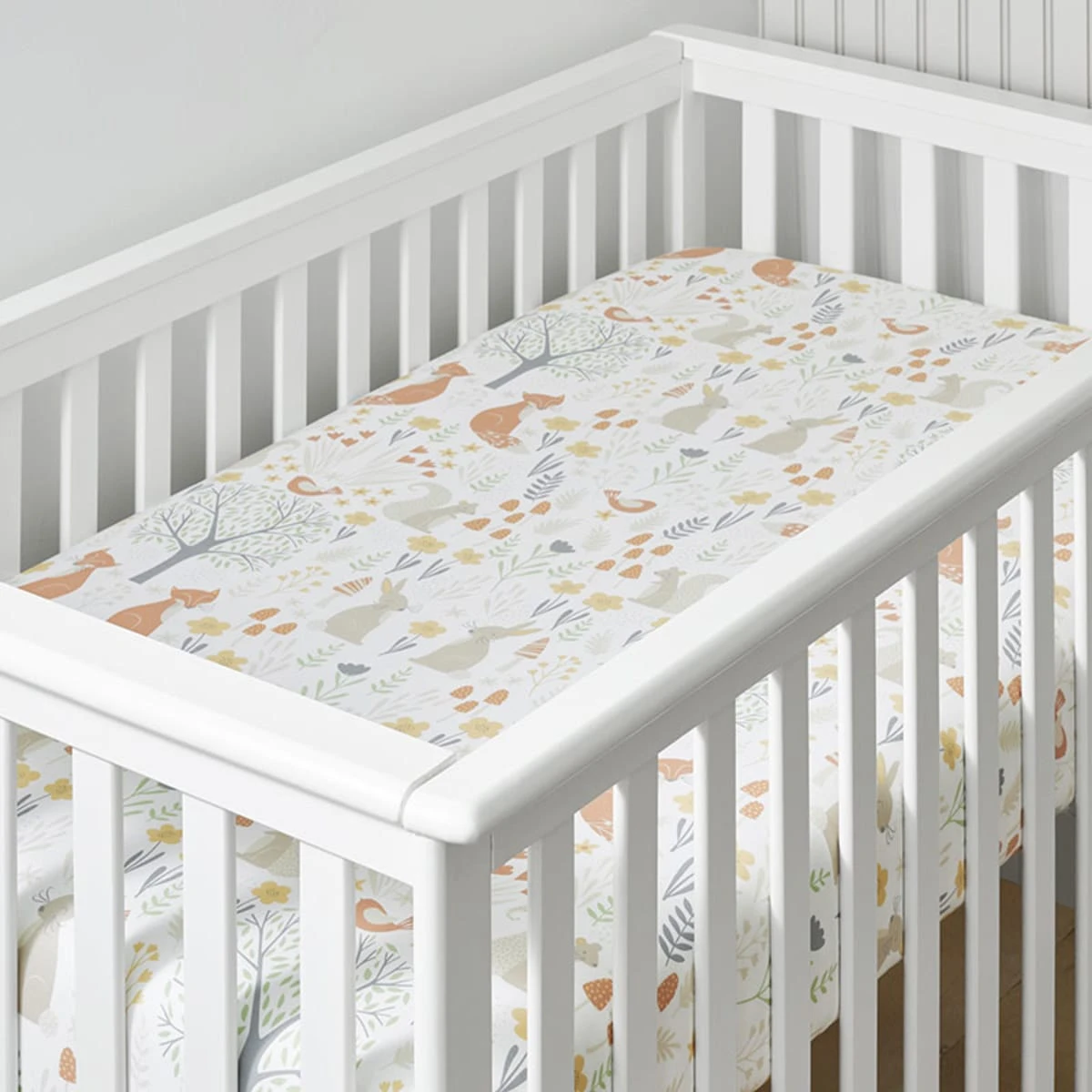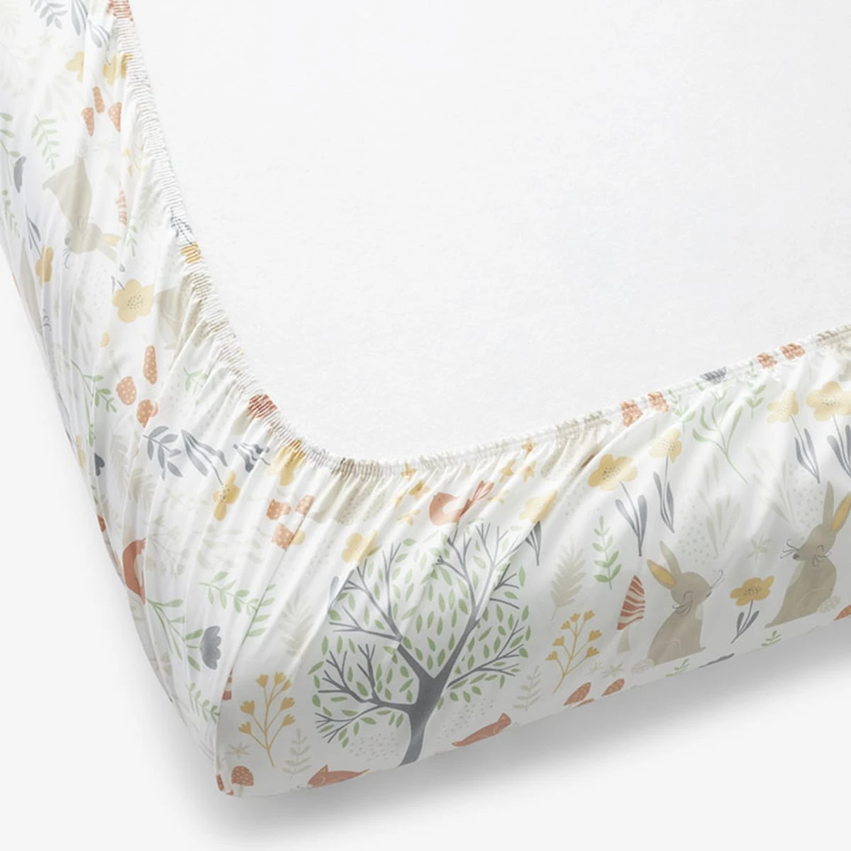 Featuring a magical melting pot of flora and fauna, our animal print fitted crib sheet is sweetly illustrated with some of our favorite forest denizens in soothing shades of gold, green, orange, and gray. Our organic cotton crib sheet creates a dreamy spot for sleepy babies to rest their head. This crib sheet is carefully crafted of organic cotton percale so it’s soft on your baby’s skin and the planet too.