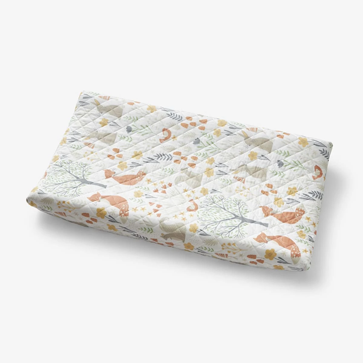 Featuring a lineup of fanciful forest creatures—including squirrels, foxes, bunnies, and birds—our changing pad cover is a cheerful accent for your nursery decor in soothing shades of gold, green, orange, and gray. Sewn of certified organic cotton, our changing pad cover features a lightly padded design, providing a supersoft, comfy surface for your baby during changing time.