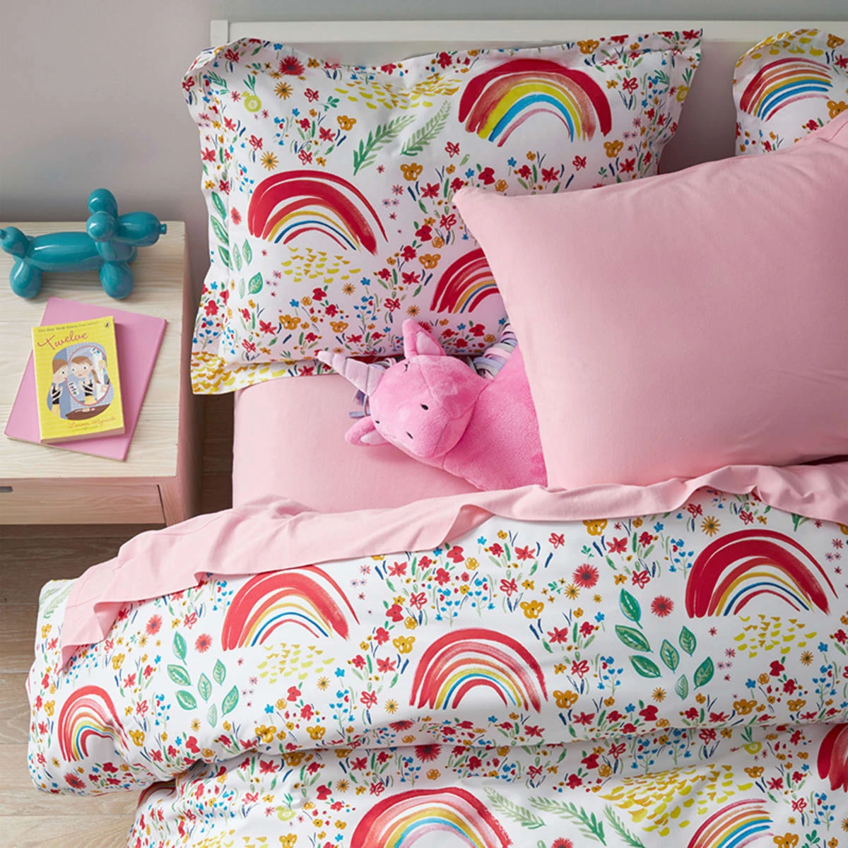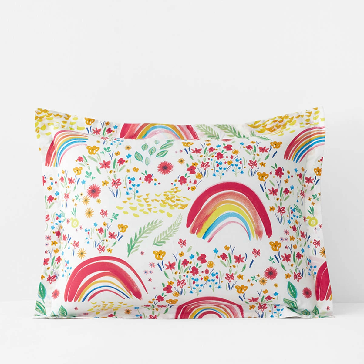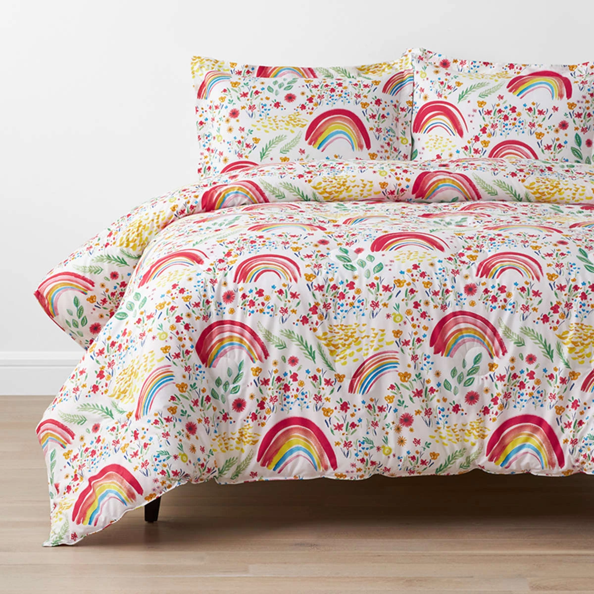 Nothing brings happy vibes like a rainbow, except maybe a field of wildflowers—and, fortunately, this pretty kids’ Rainbow Organic Cotton Percale Comforter Set has both. Crafted of pure organic percale that gets better with every wash.