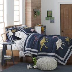 A herd of dinosaur fossils march across this Company Kids™ Skeleton Dino Organic Cotton Percale Comforter and Sham Set. Years ago, they roamed the earth; but tonight, they’re keeping your little one company. This comforter and sham are crafted of premium organic cotton percale for a feeling that’s cool and crisp to the touch.