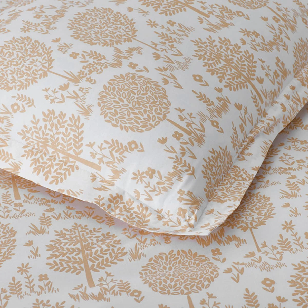 Who needs to go camping when you can sleep amongst the trees from the comfort of your own home beneath this forest print duvet cover set? This beautiful collection is landscaped with a magical grove in soft, creamsicle shades of orange and white. Sewn of organic cotton percale, this earth-friendly collection has a cool, crisp hand that gets better with every wash.