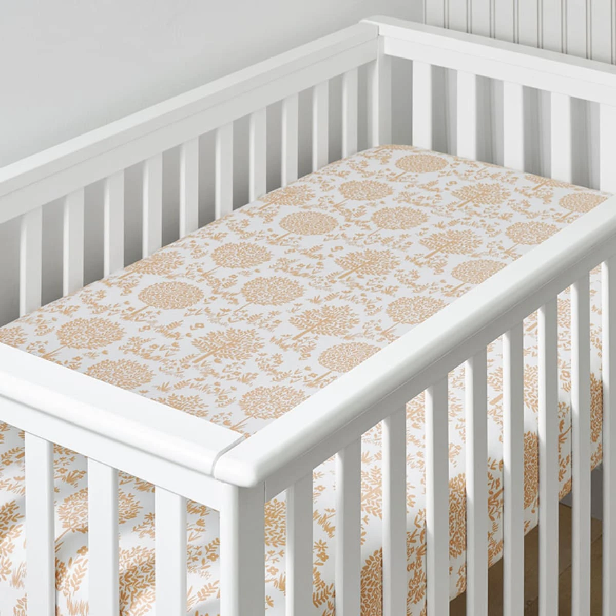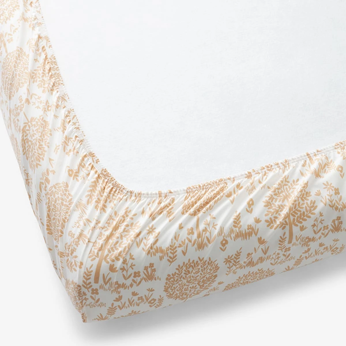 Bring the natural world to the nursery in the prettiest way possible with our fitted crib sheet that’s landscaped with a magical grove of leafy trees and pretty flowers in soft, creamsicle shades of orange and white. Our organic cotton crib sheet creates a dreamy spot for sleepy babies to rest their head. This crib sheet is carefully crafted of organic cotton percale so it’s soft on your baby’s skin and the planet too.