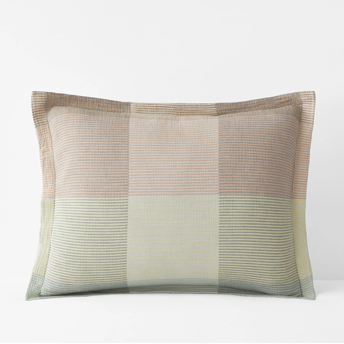 Think texture: Our Logan sham is striped in a mix of softly weathered hues and jacquard woven of textural yarn-dyed organic cotton for that perfect mix of luxury and laid-back style.