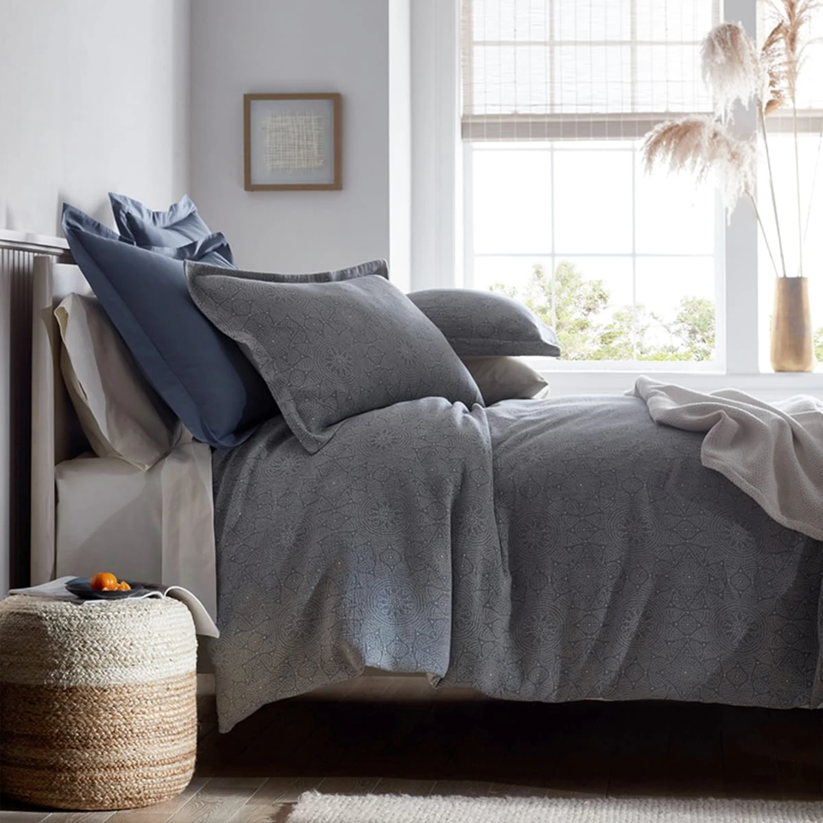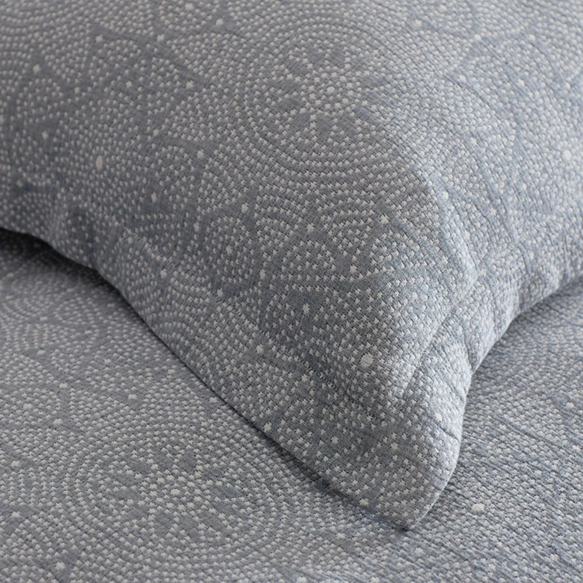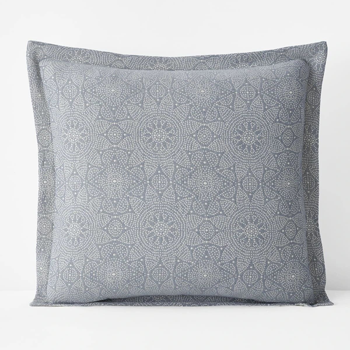 Patterned with starflower medallions, our floral jacquard weave Mandala Organic Cotton Sham in grayish blue and ivory layers the bed with modern texture. This contemporary design is jacquard woven in Portugal of certified organic cotton, then stonewashed for that relaxed, lived-in feel you love.