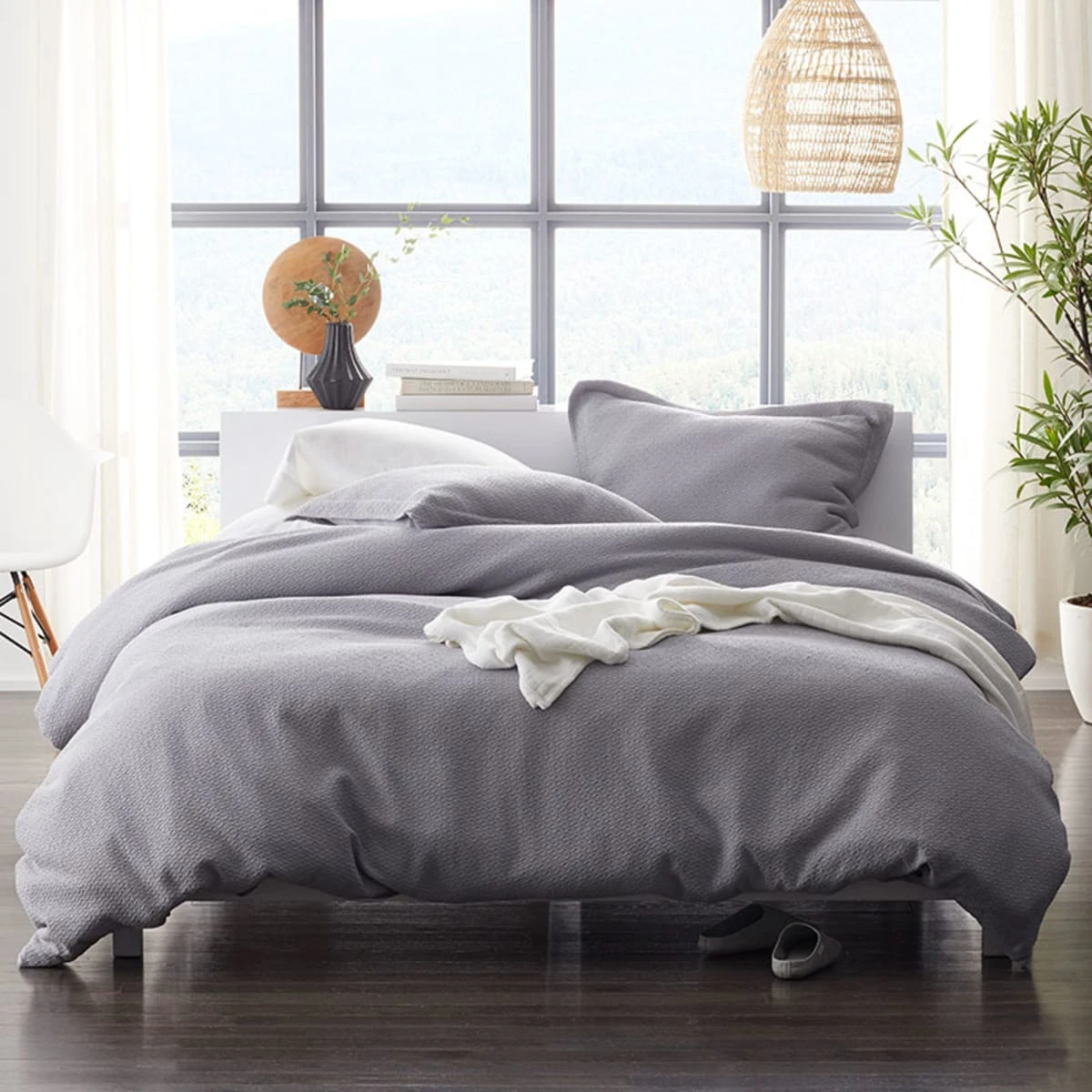 A special weave and garment wash gives this earth-friendly duvet cover its beautiful texture and an ultra-soft hand. Woven in Portugal of organic cotton, the simple, contemporary design is plays nicely with solids, prints, and other textures.