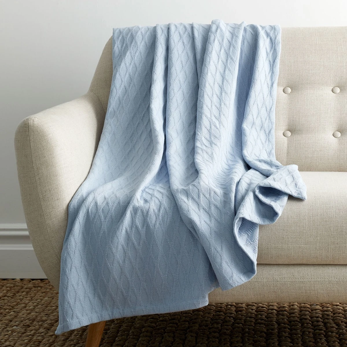 This cotton blend blanket, with its subtle design and beautiful color, is silky soft, breathable, and hypoallergenic. Woven from a mix of cotton and rayon made from bamboo, this versatile blanket is perfect for any season—use alone during the warmer months or as an extra layer when it’s chilly.