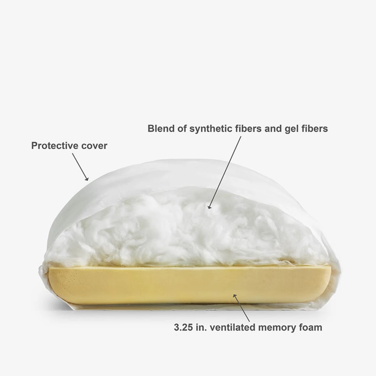 One side of the pillow features a 3.25 in. ventilated memory foam insert that molds to your head and neck, relieving pressure points and providing ergonomic support for a better night’s rest every night of the week. The other side of the pillow is a revolutionary blend of synthetic fibers and gel fibers that provide cloud-like comfort and support.