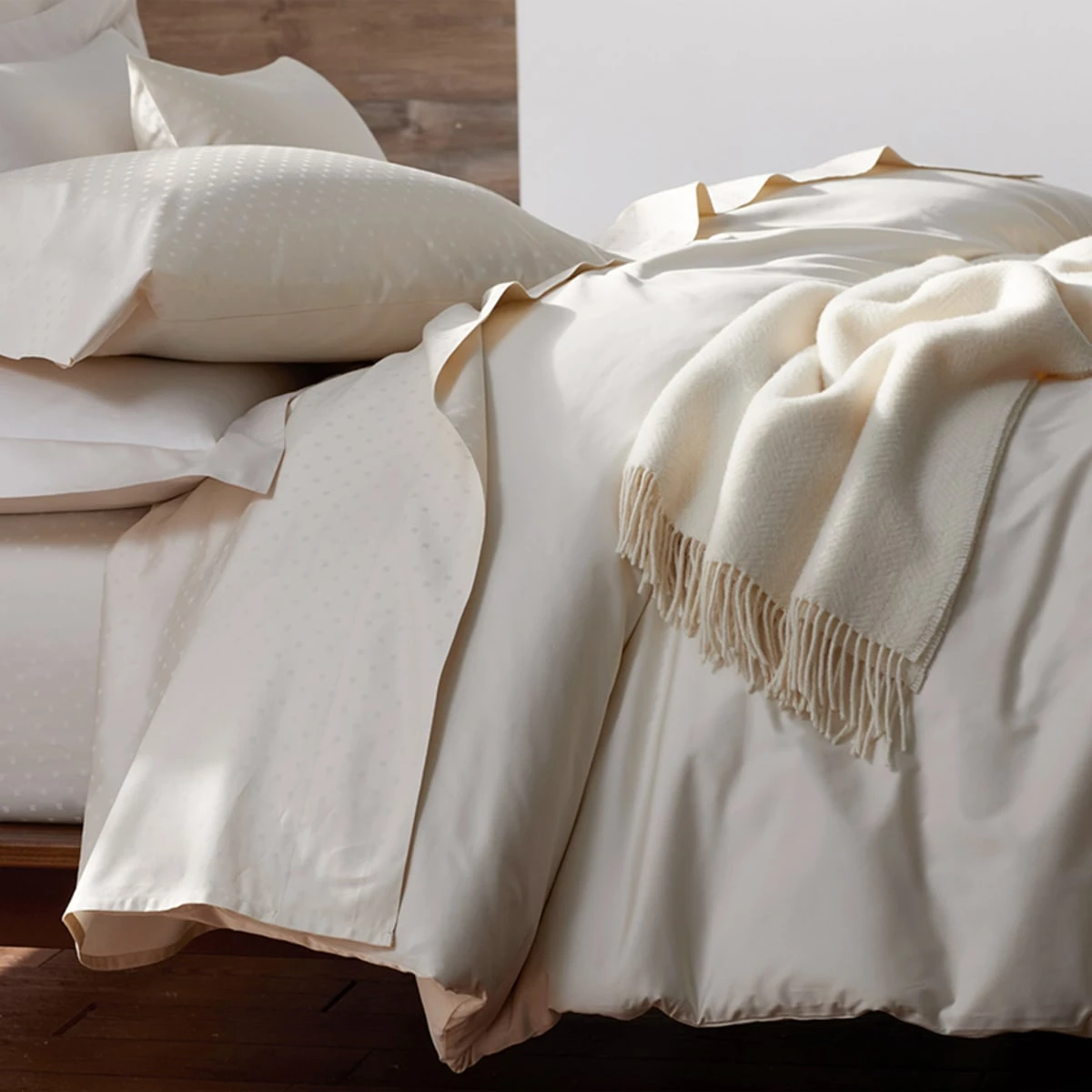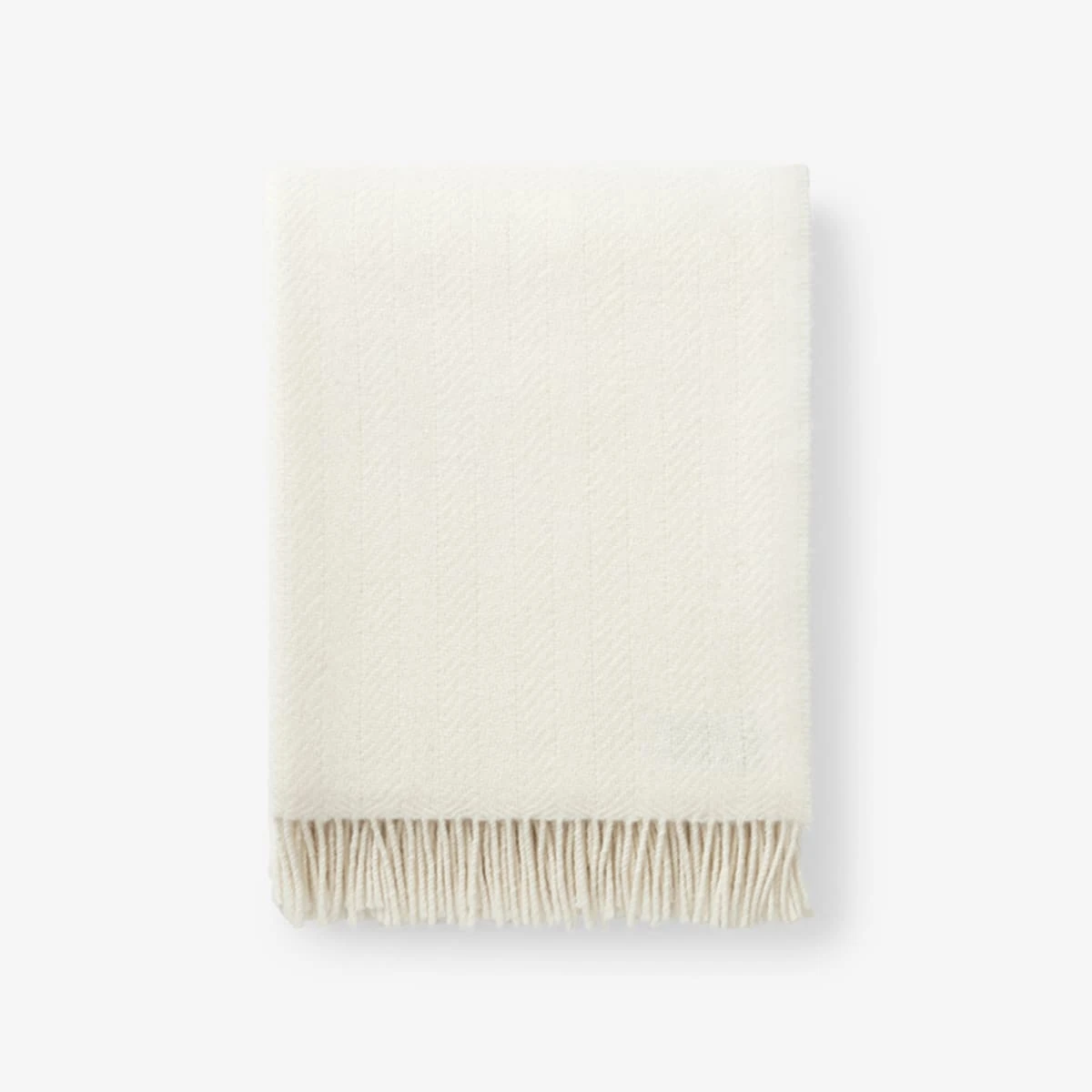 Patterned in a classic herringbone, our luxe throw blanket is woven of merino wool and cashmere for a feel that’s so soft and cozy, you’ll be wishing for cooler weather. Edged with cream fringe on two sides.