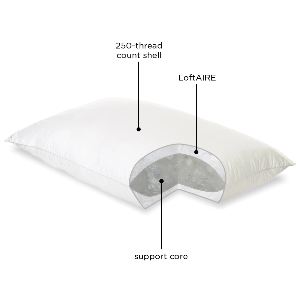 Supreme softness meets excellent support. A wonderful choice for those sleepers with a sensitivity to down, our premium LaCrosse™ pillow is filled with an exclusive, high-quality, synthetic blend we named LoftAIRE™ which captures down’s incomparable loft and softness. Offering medium support for back and side sleepers, our LoftAIRE™ pillow is constructed with dual chambers: the inner core provides firmness while the outer chamber provides softness. Encased in a finely sewn shell of a soft and smooth, 250-thread count cotton cambric. Exclusively by The Company Store.