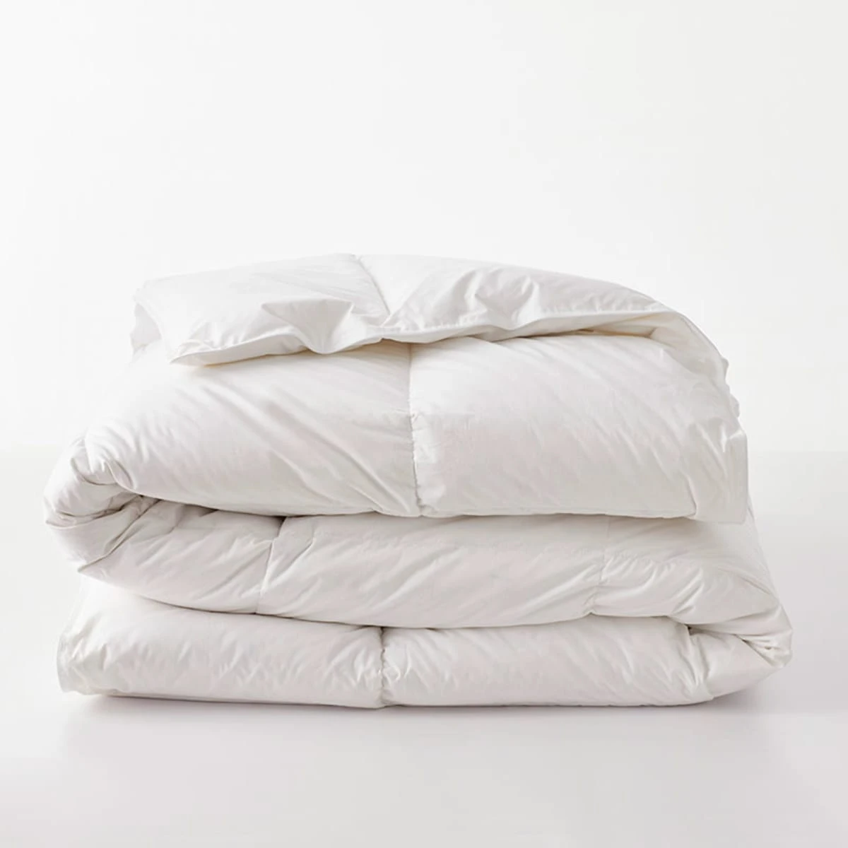 Beautifully crafted and ethically sourced, our down with an organic cotton shell comforter is good for you and the planet so you can sleep better at night. Filled with premium, hypoallergenic, RDS certified European white down and encased in a 100% organic cotton cambric shell, this comforter comes in four warmth levels with box stitch construction to provide the perfect level of warmth for any season.