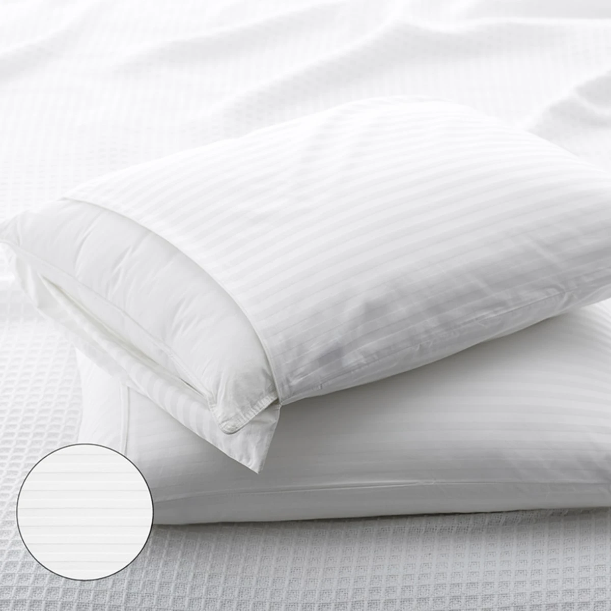 Choose our essential pillow protectors in three different fabric and quality levels, a cotton pillow protector, sateen cotton pillow protector, and damask pillow protector. Our specialty pillow protectors are also available in a bed bug protective pillow cover option and a dust-mite proof pillow cover option. These two innovative styles keep pesky bed bugs and annoying allergies at bay. A great way to extend the life of your pillow and improve the quality of your sleep, pillow protectors keep all your pillows clean and dust-free night after night. See what a difference well-crafted pillow protectors make on your bed and in your life.