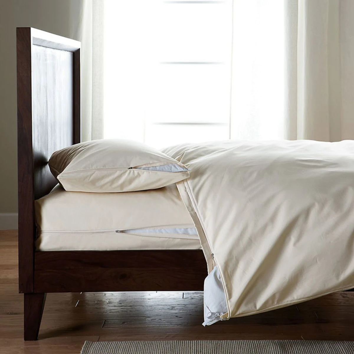 Cool, smooth, and breathable—combine all of our organic cotton bedding protectors, the pillow protector, comforter protector, 9 in. mattress/box spring protector or 12 in. mattress/box spring protector, together and start enjoying a better night’s sleep.