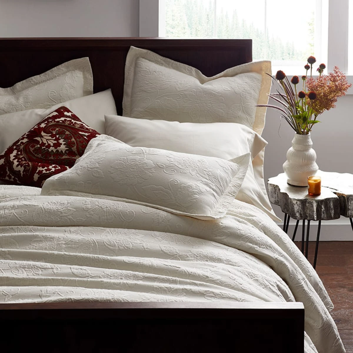 Intricately patterned with large-scale, dimensional flowers, our Putnam bedspread is crafted in Portugal of cotton that’s been washed for a divinely soft hand. This coverlet is a gorgeous, rich textural layer that can be substantial year-round with the weight of a blanket, but the with a polished look that works top of the bed. It can also be paired under a comforter when the weather gets cooler.