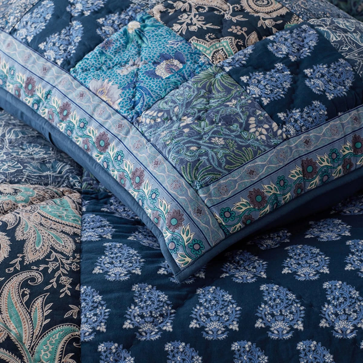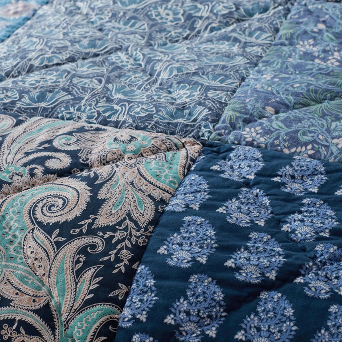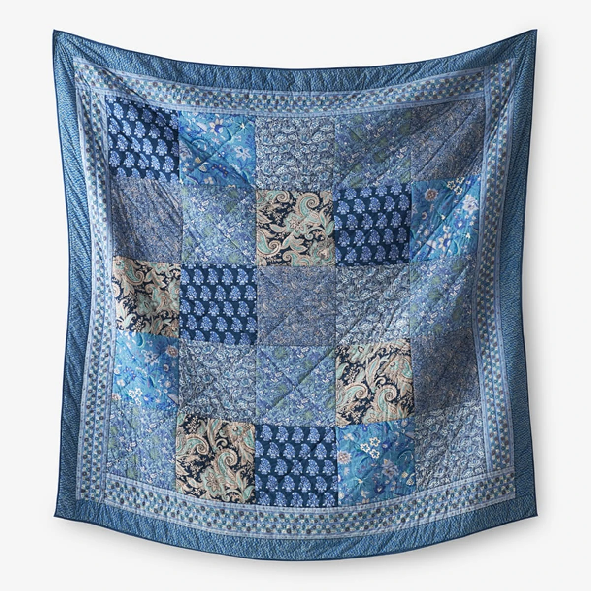 Cast in opulent shades of blue—from indigo, navy and ultramarine to teal, aqua and azure brightened with pops of cream and gold—our Sanganer Floral Patchwork Quilt is the pièce de rĂ©sistance in any bedroom with its charming mix of florals, paisleys, and leafy botanicals. Handcrafted by skilled artisans and washed for lived-in softness so it’s as comfortable as it is beautiful.