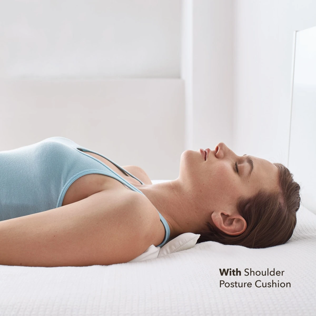 Designed for back sleepers, the Shoulder Posture Pillow naturally draws shoulders back to counter hunching back and slouching shoulders. It effectively expands the chest and increases oxygen flow while also helping to reduce pressure points on the back by adding extra cushioning. Another plus, this pillow does not clump or lose shape. Designed and assembled in the USA. Machine washable.