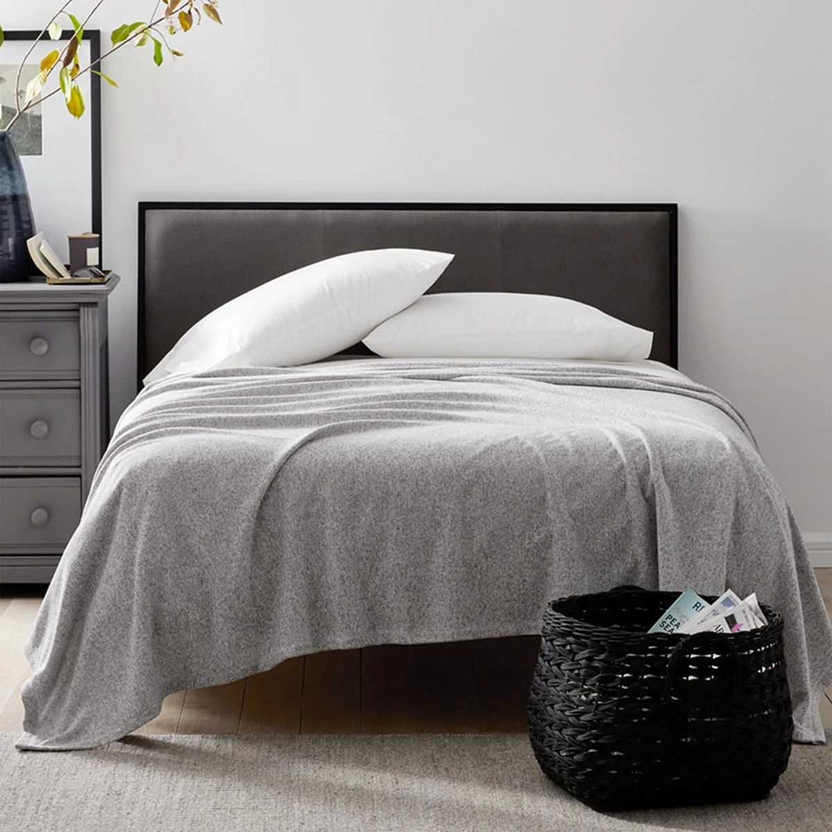 As cozy and lived-in as your favorite sweatshirt, our reversible blanket is an all-season layer perfect to use alone or with a duvet when the chill sets in. Crafted of soft, breathable poly knit, it reverses to an ultra-plush fleece backing and is available in three heathered hues. Love the look? You’ll adore the matching throw and pillow cover, sold separately.